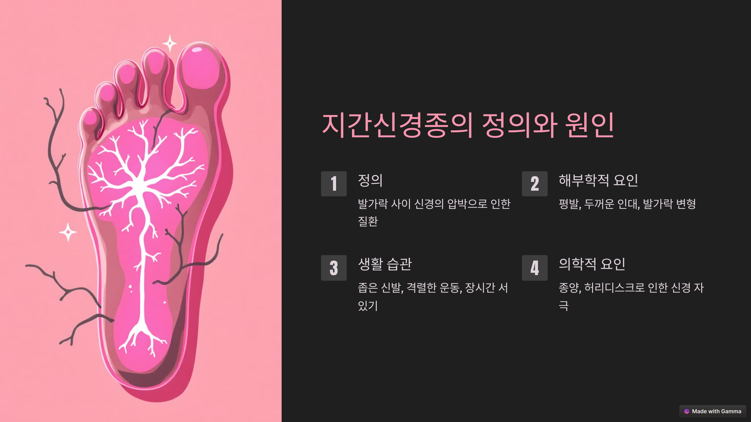 지간신경종은 해부학적, 생활 습관, 의학적 요인으로 발생합니다.