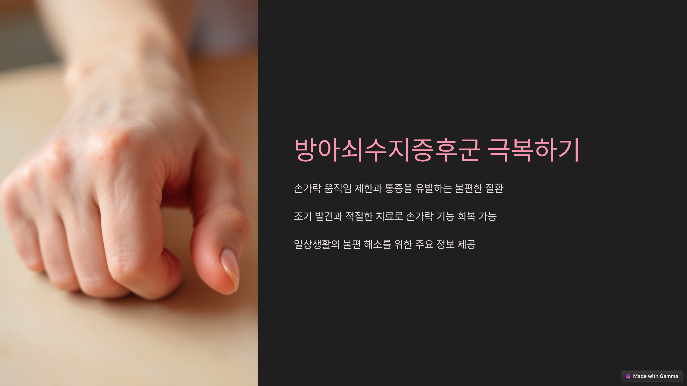 이러한 증상들은 일상생활에서 물건을 잡거나 손을 사용하는 활동에 지장을 주어 큰 불편을 초래할 수 있습니다.