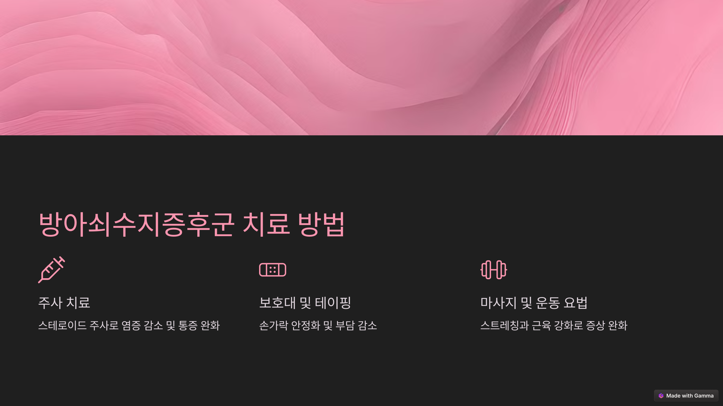 - 테이핑: 근육과 인대에 추가적인 지지를 제공하여 손가락의 부담을 줄이고 재발을 방지하는 데 도움을 줍니다.