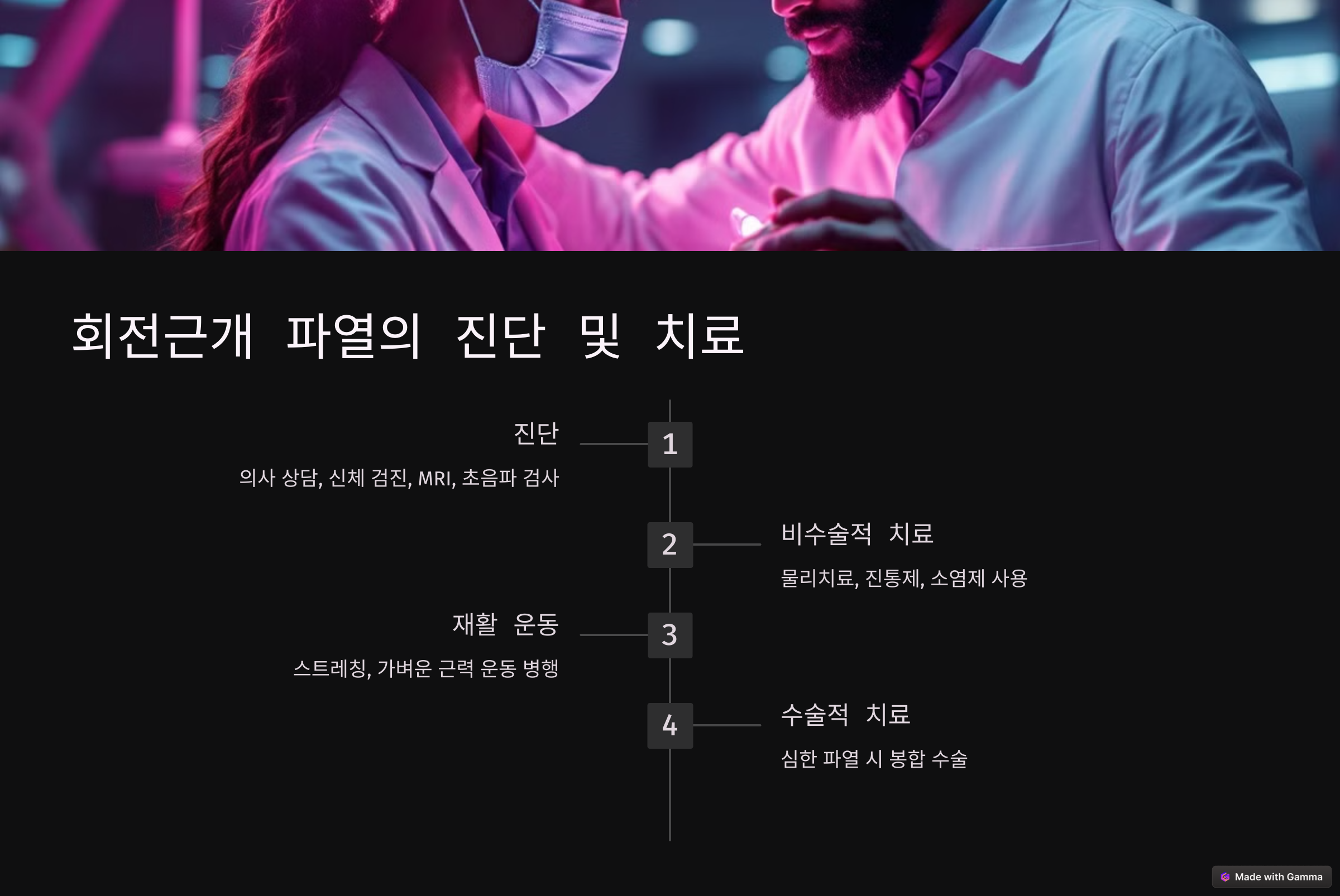 - 🛠️ 수술적 치료: 파열이 심하거나 비수술적 치료로 호전되지 않는 경우 수술을 통해 파열 부위를 봉합할 수 있습니다. 수술 후에는 재활 운동이 필수적으로 따라야 하며, 회복 기간 동안 어깨의 움직임을 점차적으로 늘려가는 것이 중요합니다.