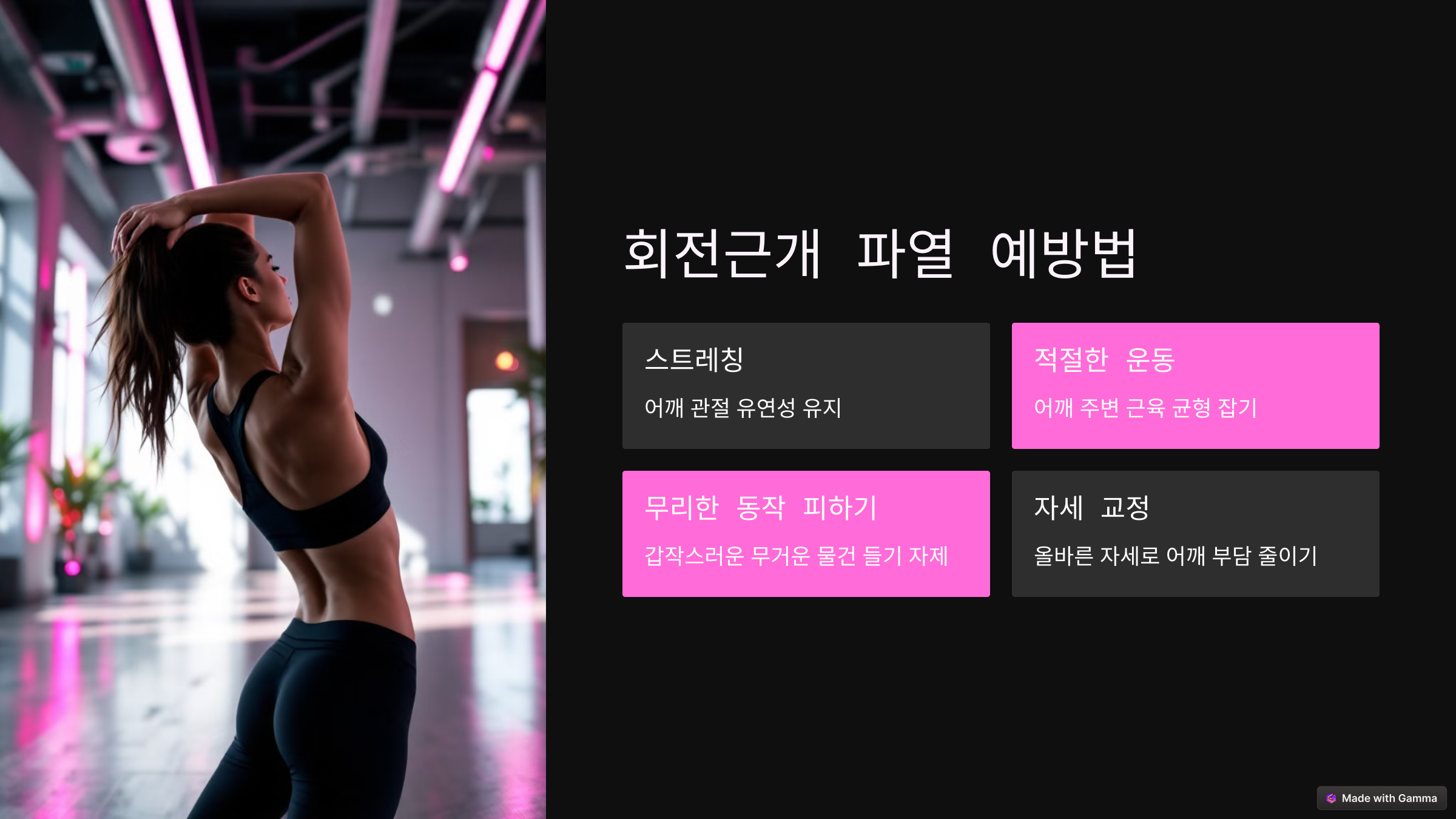회전근개 파열을 예방하려면 다음과 같은 방법을 실천하는 것이 좋습니다: