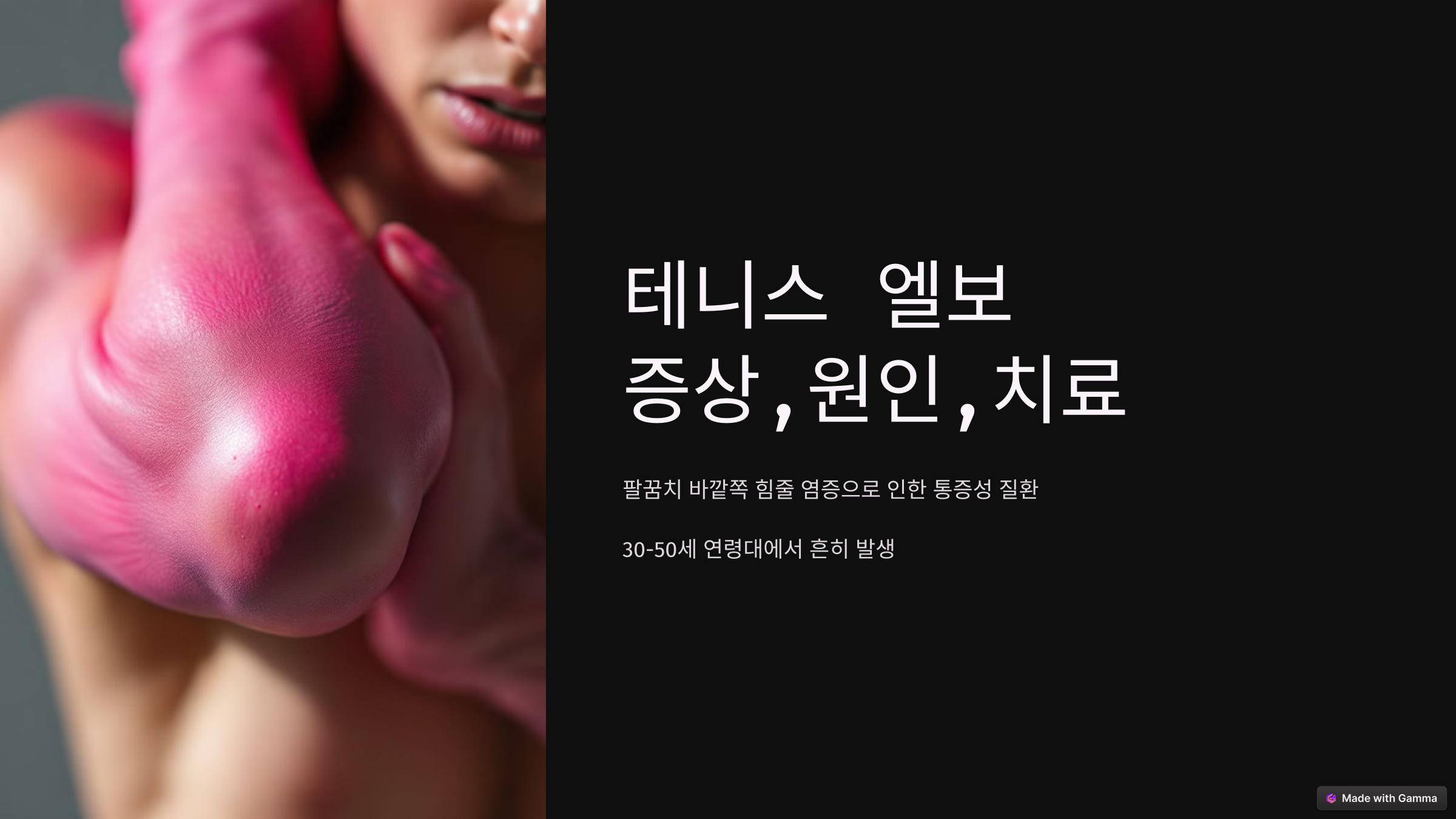 테니스 엘보(외측 상과염)는 팔꿈치 바깥쪽 힘줄에 작은 염증이나 손상이 발생하여 나타나는 통증성 질환입니다. 이는 성인의 약 1-3%에서 발생하며, 특히 30-50세 연령대에서 흔히 볼 수 있습니다. 주로 반복적 손목 사용이나 과도한 팔의 움직임이 원인이 됩니다. 이름에서 '테니스'가 연상되지만, 컴퓨터 작업, DIY 작업, 악기 연주 등 반복적인 팔과 손목 움직임이 필요한 다양한 활동에서도 발생할 수 있습니다.